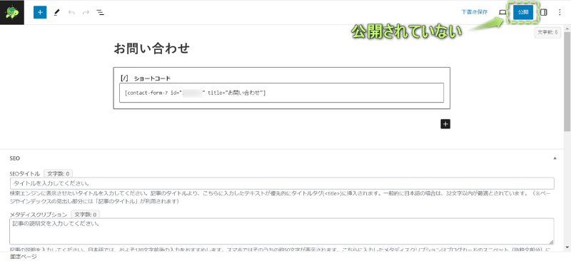 投稿ページと同じように、固定ページに挿入したお問い合わせフォームを下書きで保存したままだと、表示されないです。