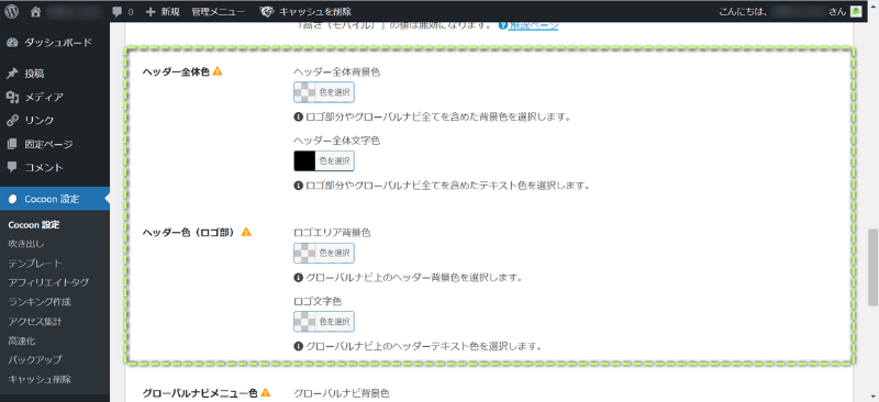 Cocoonでヘッダーをカスタマイズする方法は、下記の通りです。