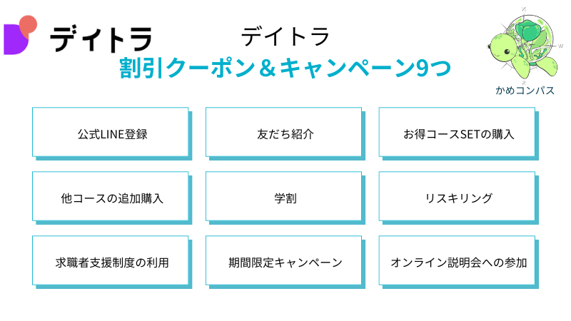 この記事を読めば、あなたも簡単にデイトラの割引キャンペーンをすべて理解した上で、1番お得に受講する方法が分かるようになります。