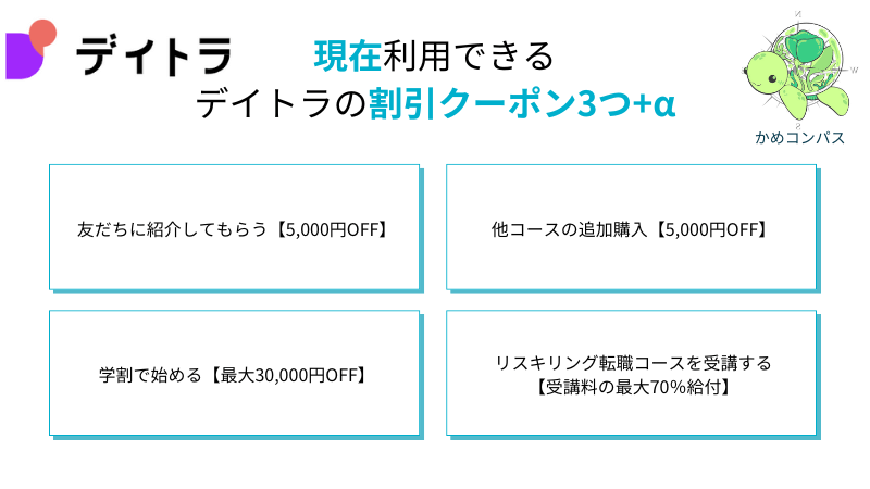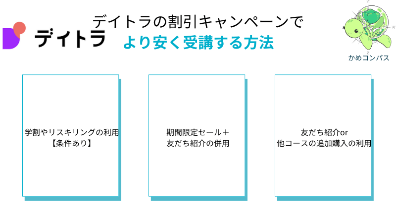 デイトラの割引キャンペーンでより安く受講する方法を3つ紹介します。