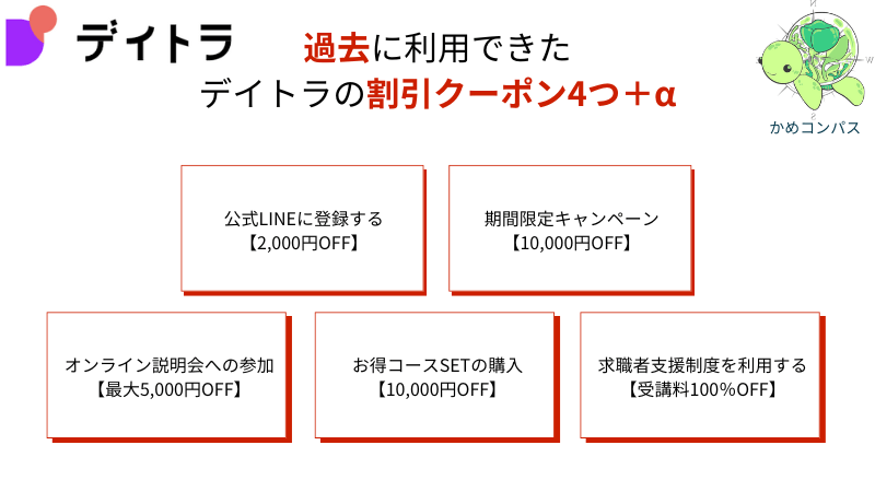 デイトラはオンライン説明会の参加者に割引クーポンを配布する回がありました。
