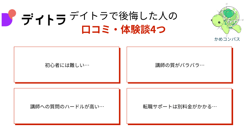 実際にデイトラを受講して後悔した人の口コミ・体験談を4つに厳選して紹介します。
