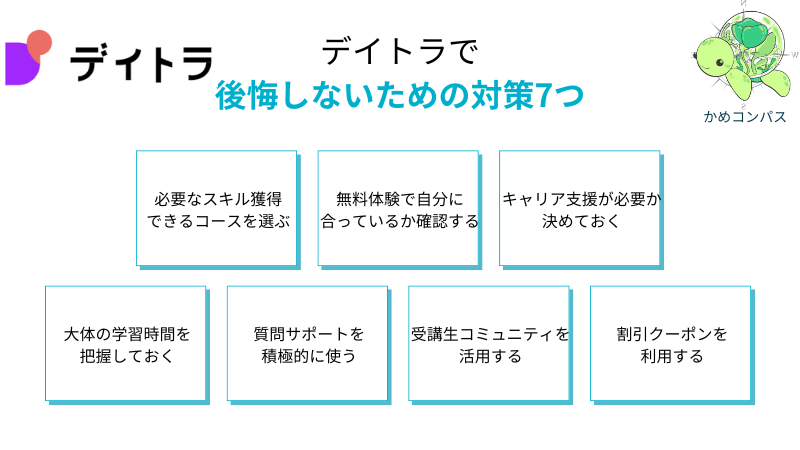 デイトラを受講して後悔しないための対策は、以下の7つです。