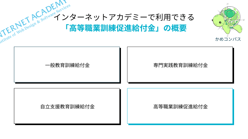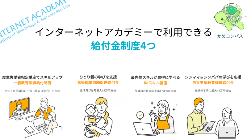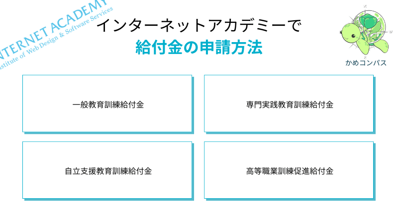 インターネットアカデミーで利用できる給付金は、以下の4つです。