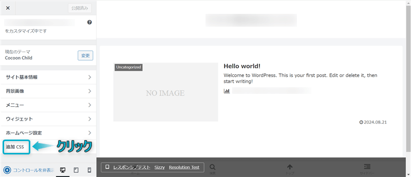 追加CSSをクリックする