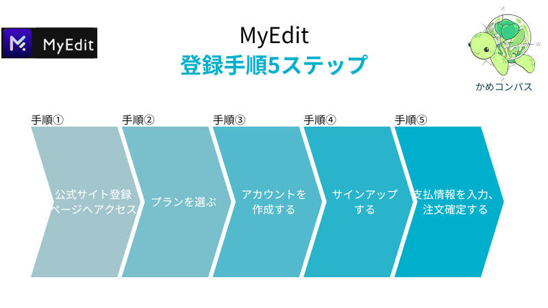 MyEditの登録手順は、以下の5ステップです。