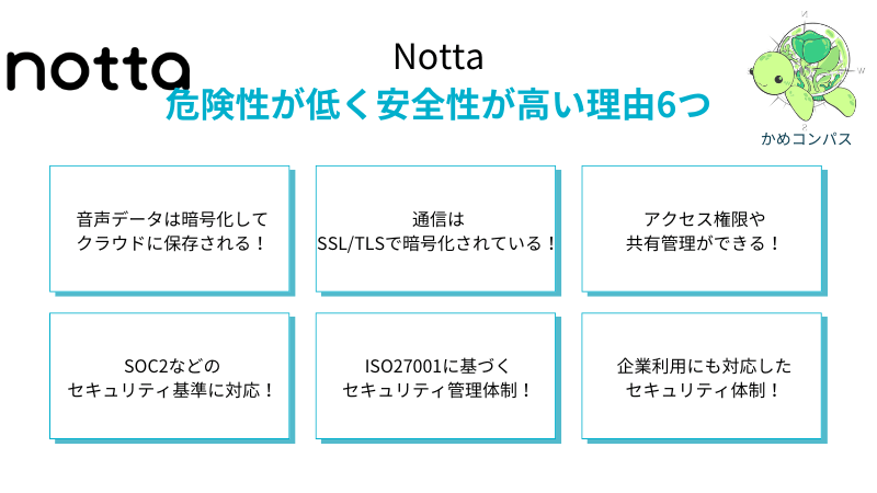 Nottaは正しく使えば危険性は低く、セキュリティも高い安心して使える文字起こしツールです。