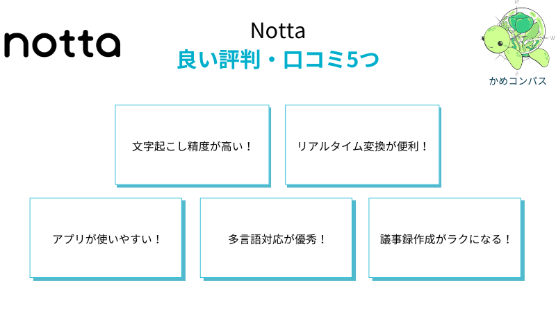実際の利用者の声をもとに、Nottaの良い評判・口コミを5つに厳選して紹介します。