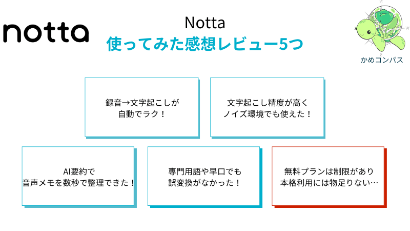 かめコンパス結論、【Notta】
