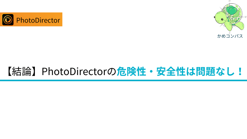 PhotoDirectorは、危険性や安全性の面で安心して使える写真編集ソフトです。