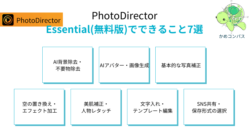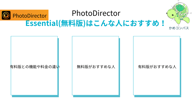 かめコンパス結論、まずはPhotoDirector Essential