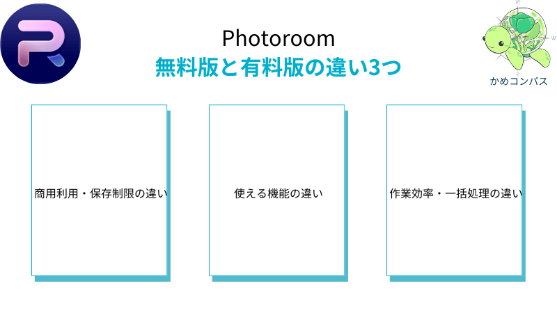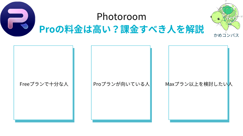 かめコンパス結論、Photoroomは無料でも使えるが、本格利用ならPro以上が最適です!