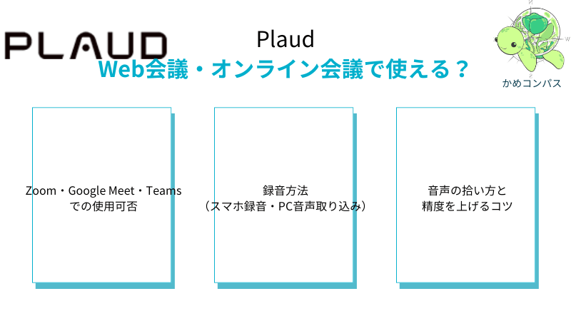 PlaudはWeb会議・オンライン会議で使えるかどうか、以下3つの項目に分けて解説します。