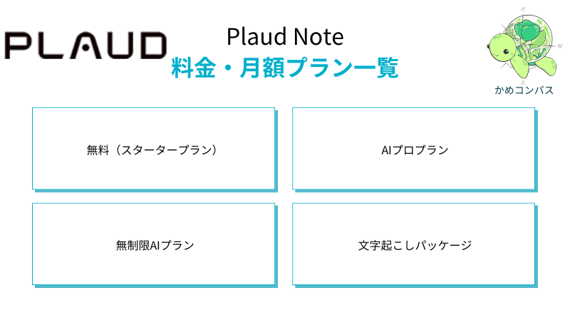 Plaud Noteの料金・月額プランを以下の表にまとめました。
