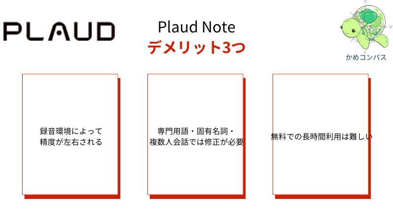 Plaud Noteのデメリットは、以下の3つです。