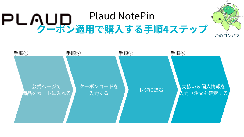 Plaud NotePinをクーポンコード適用で購入する手順は、以下の4ステップです。