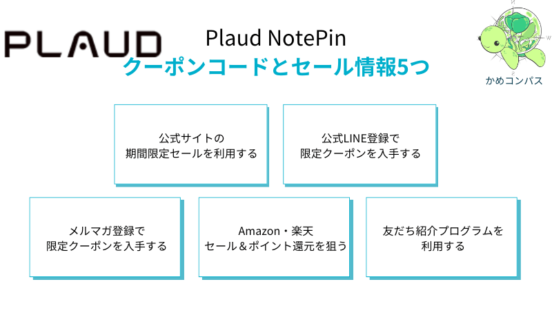 Plaud NotePinをクーポンコードやセールで安く買う方法は、以下の5つです。