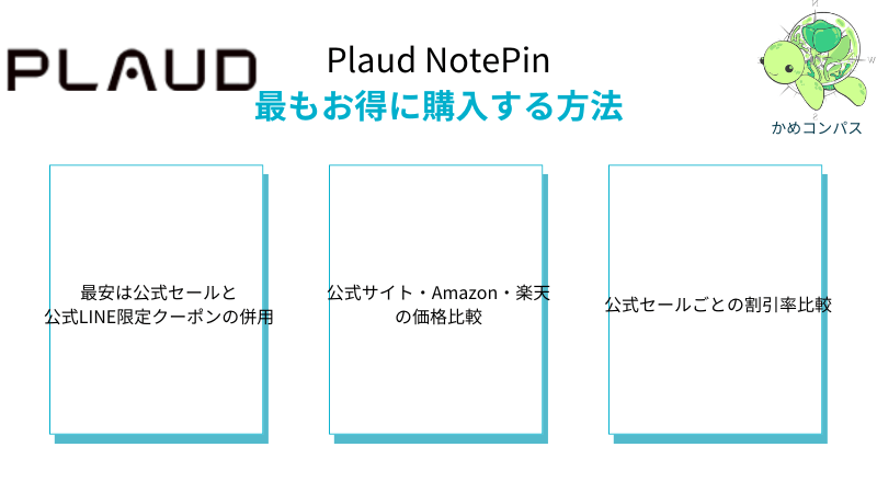 Plaud NotePinは公式セールと公式LINE限定クーポンを併用するのが最も安く購入できる方法です。
