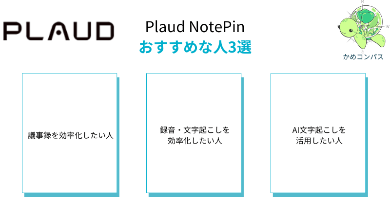 以上より、Plaud NotePinは議事録作成の時間を減らし、業務効率を上げたい人に適したツールといえます。