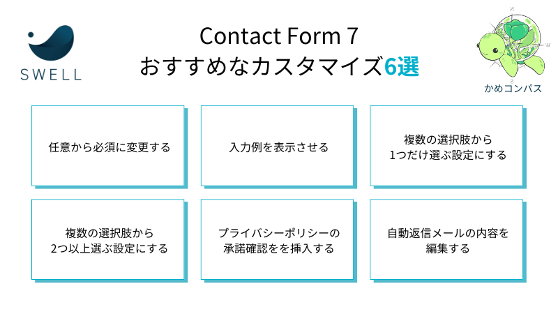 ここからはContact Form 7のおすすめなカスタマイズを6つに絞って紹介します。