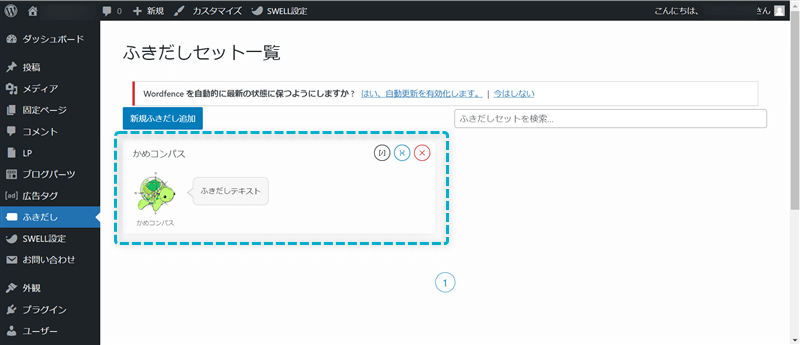 SWELLでは以下のようなセリフを言うアイコン=ふきだしを設定できます。