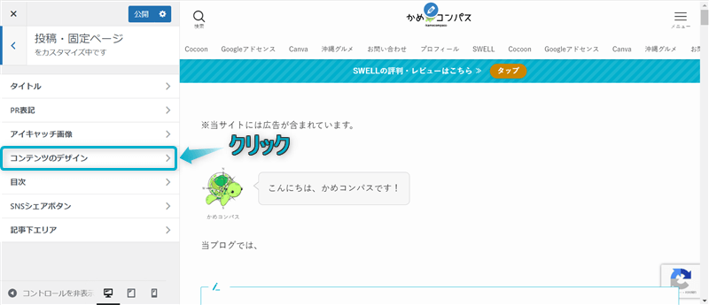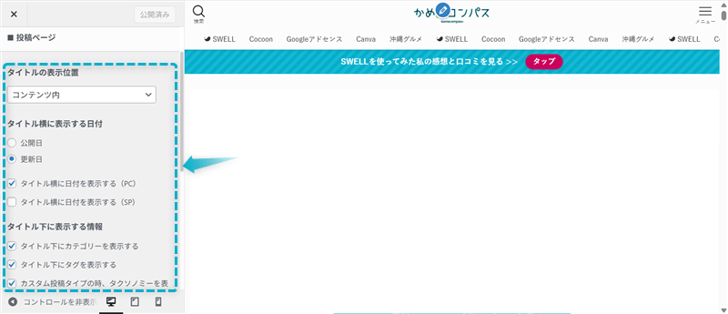 SWELLではページ内のデザインを設定でき、本記事では以下の3項目に絞って解説します。