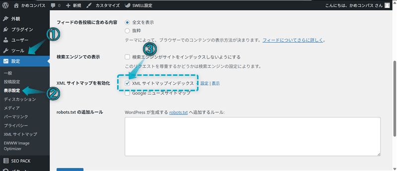 つづいて、設定⇒XMLサイトマップの順にクリックします。